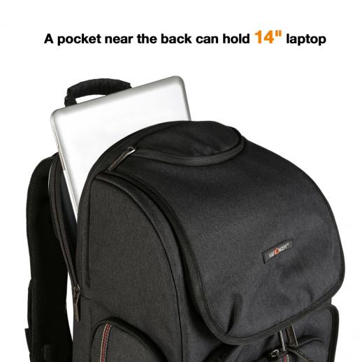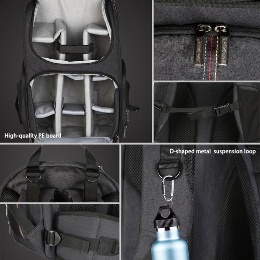- * Mochila multi-funcional da câmera, pode conter uma câmera e várias lentes, lanterna, um laptop de 14 "e pequenos itens.