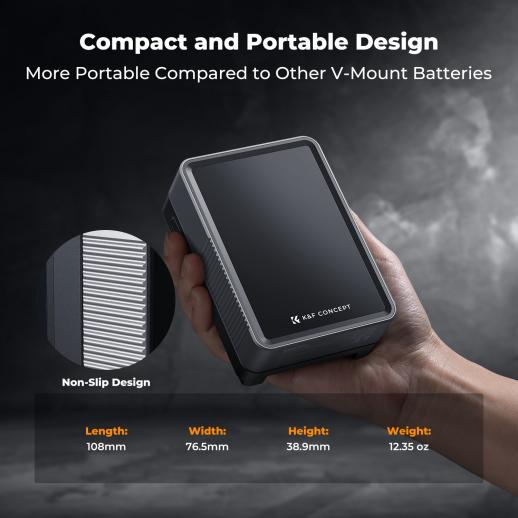 - * 【Compacta e ideal para viagens】30% menor que as baterias V-mount tradicionais, esta bateria compacta de 11,7 x 7,6 x 5,7 cm pesa apenas 355 g. Seu design leve e compacto a torna ideal para viagens aéreas e fácil de transportar, perfeita para criadores em movimento. A tecnologia BMS integrada garante desempenho ideal e protege contra curtos-circuitos, sobrecarga, superaquecimento e muito mais.